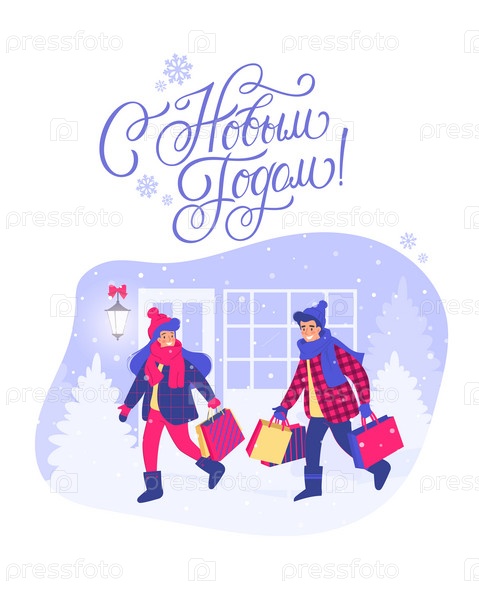 С Новым годом - русский праздник. С Новым годом рукописные надписи, типографский векторный дизайн для поздравительных открыток и плакатов. Русский перевод: С Новым годом. Векторная иллюстрация