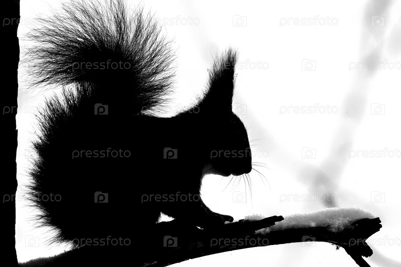 Белка на ветке (силуэт)