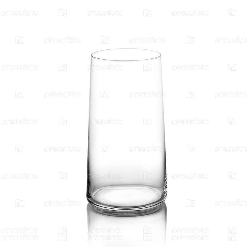 Пустой прозрачный стеклянный высокий стакан на белом фоне. Изолировать