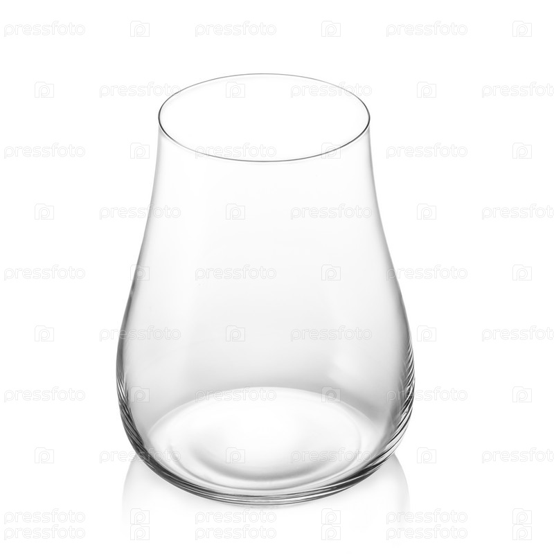 Пустая прозрачная стеклянная чашка в форме тюльпана на белом фоне. Изолированный