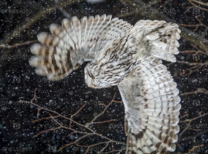 Серая неясная сова в полете (strix aluco)