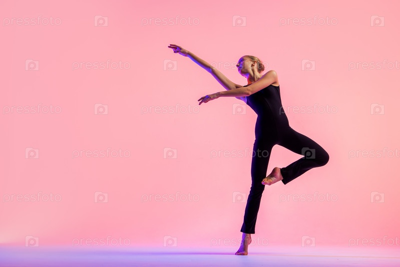 Молодой танцор-подросток танцует на красном фоне студии. Балет, танец, искусство, современность, концепция хореографии