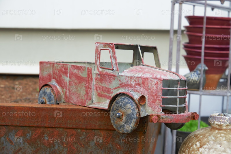 Винтажный ржавый игрушечный грузовик для украшения сада