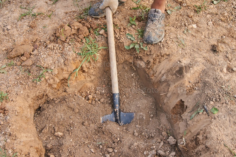 Садовник делает отверстие в земле для посадки деревьев
