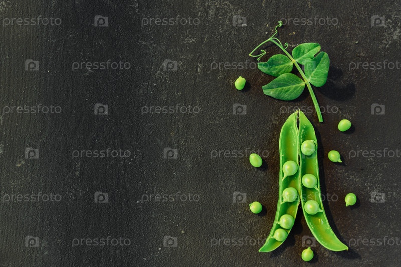 Овощной фон с копией пространства для ваших проектов. Крупный план свежего спелого зеленого горошка на черном фоне
