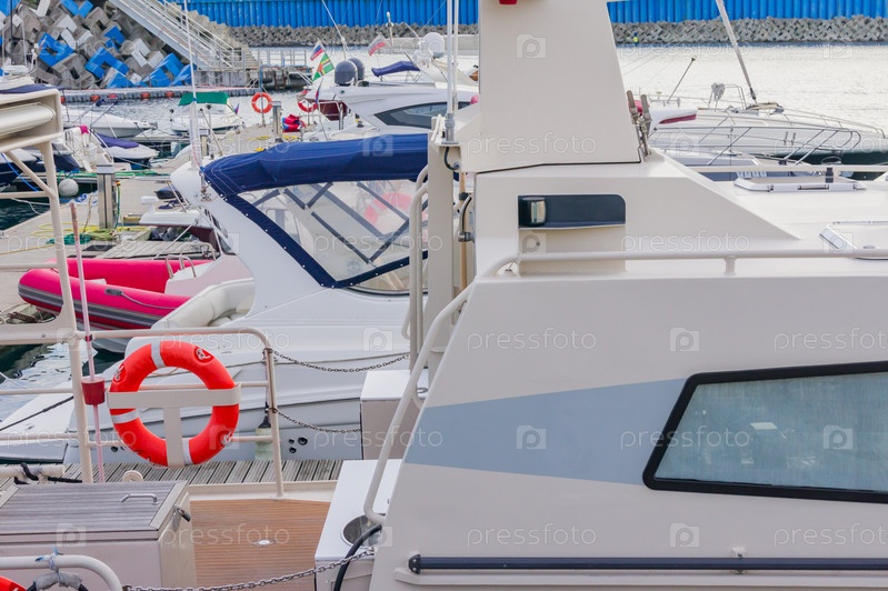 Группа яхт припаркована в гавани в летний день