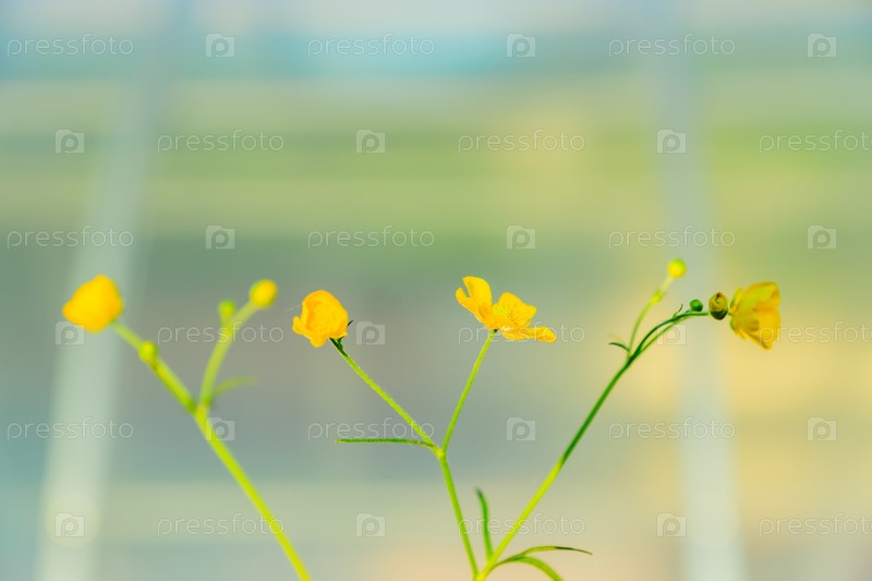 Красивые желтые полевые цветы цветки лютика в свете заката. Фон природы