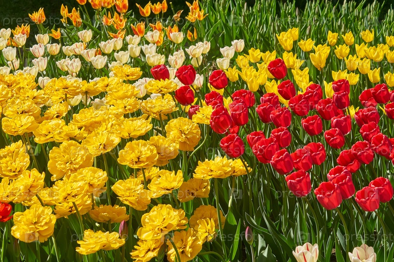 Красивые оранжевые и желтые поля тюльпанов весной, естественный фон