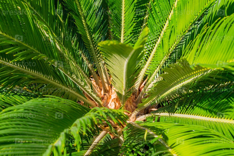 Зеленые листья кокосовой пальмы. Естественный летний фон