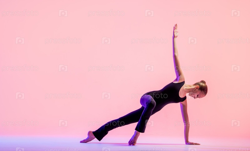 Молодой танцор-подросток танцует на красном фоне студии. Балет, танец, искусство, современность, концепция хореографии