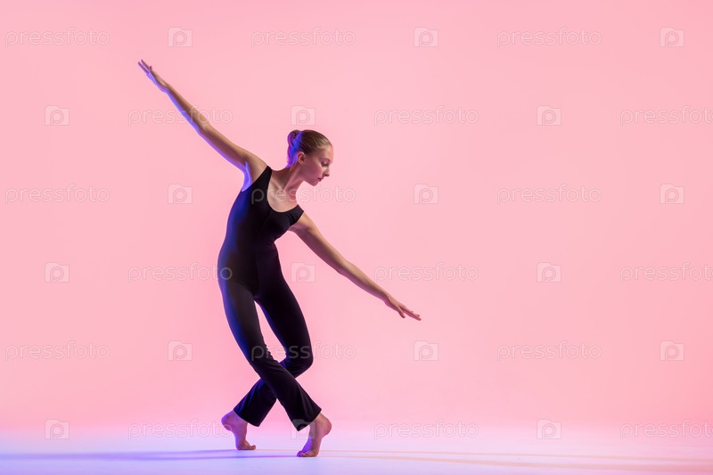 Молодой танцор-подросток танцует на красном фоне студии. Балет, танец, искусство, современность, концепция хореографии