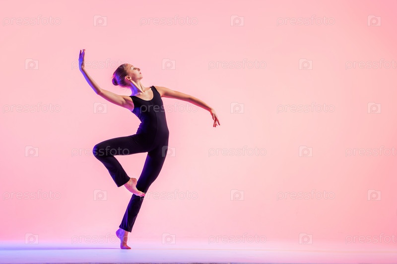 Молодой танцор-подросток танцует на красном фоне студии. Балет, танец, искусство, современность, концепция хореографии