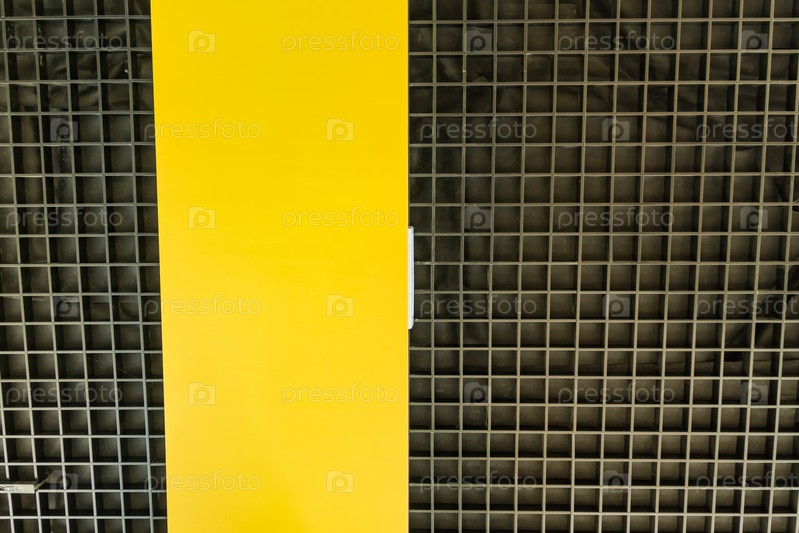 Вид снизу на современный черный потолок с желтой панелью. Дизайн интерьера. Задний план