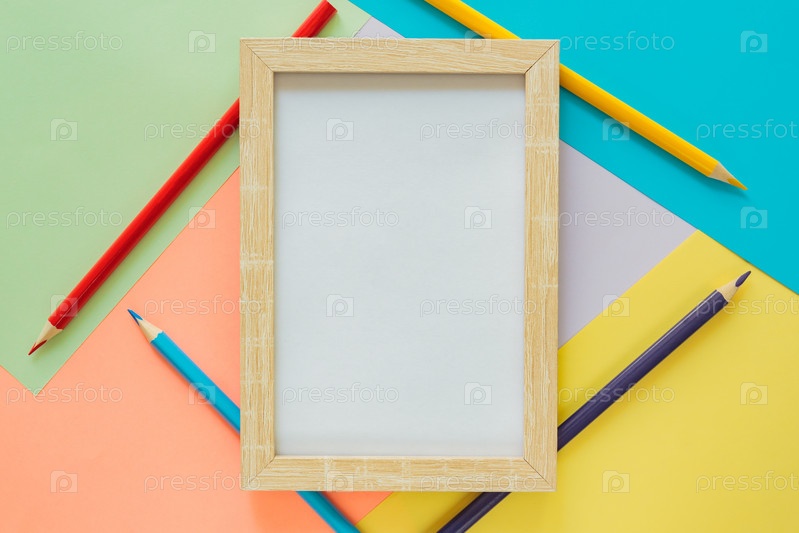 Креативная квартира лежала со школьными принадлежностями. Смоделируйте рамку и разноцветные карандаши на пастельно-красочном фоне. Обратно в школу