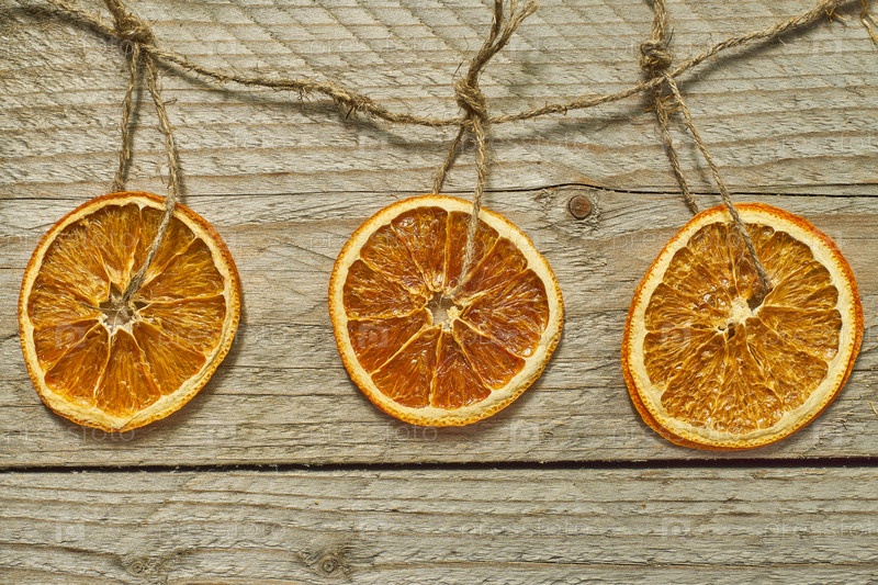 Рождественский декор. сушеные апельсиновые дольки для украшения новогодней елки на деревянном фоне