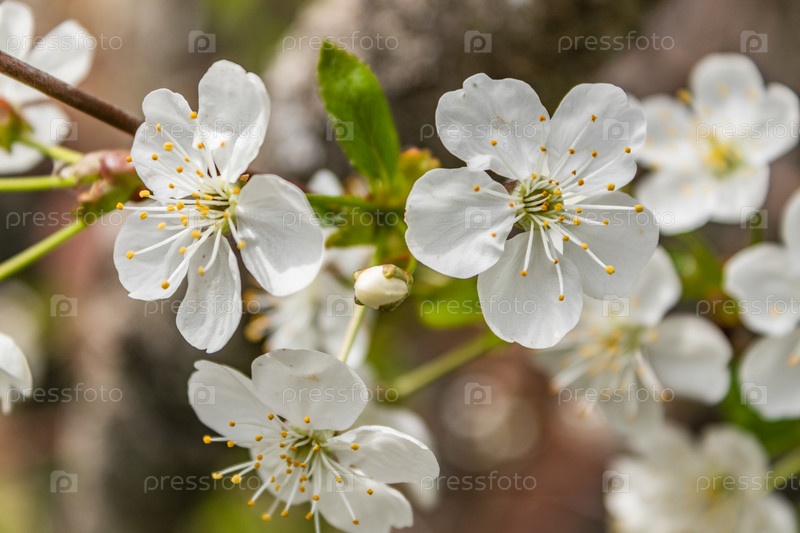Белая вишня цветет весенним днем в саду. Прекрасный весенний день. крупным планом