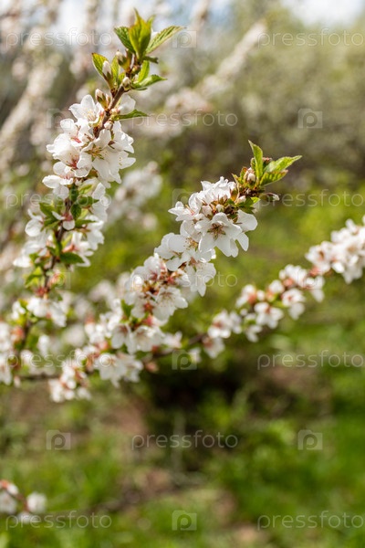 Чернослив войлочный. Пощупал ветви цветущей вишни в саду ранней весной. Россия