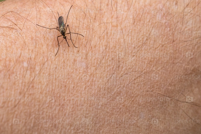 Один комар садится на руку, прокалывает кожу и сосет человеческую кровь. Вызывает заболевание малярия. Комары опасные переносчики болезней
