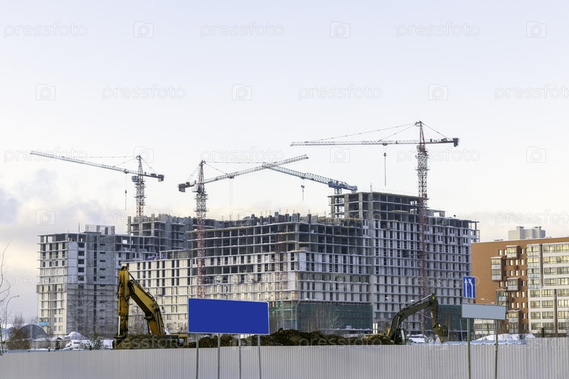 Строительство современного жилого комплекса. Москва, Россия