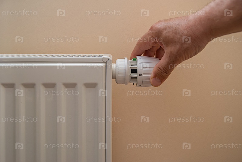 Мужская рука на нагреве контроллера температуры батареи, крупный план