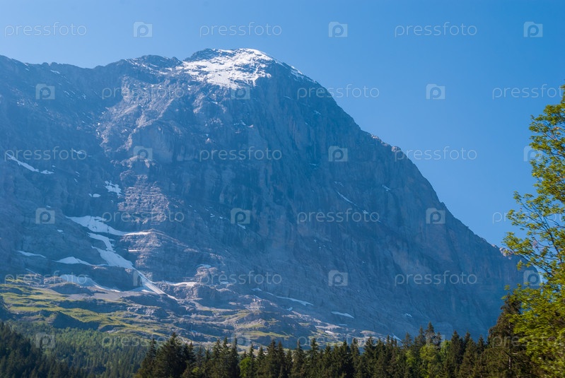 Альпийская панорама северной стены пика Эйгер, Гриндельвальд, Бернские Альпы, Швейцария, Европа