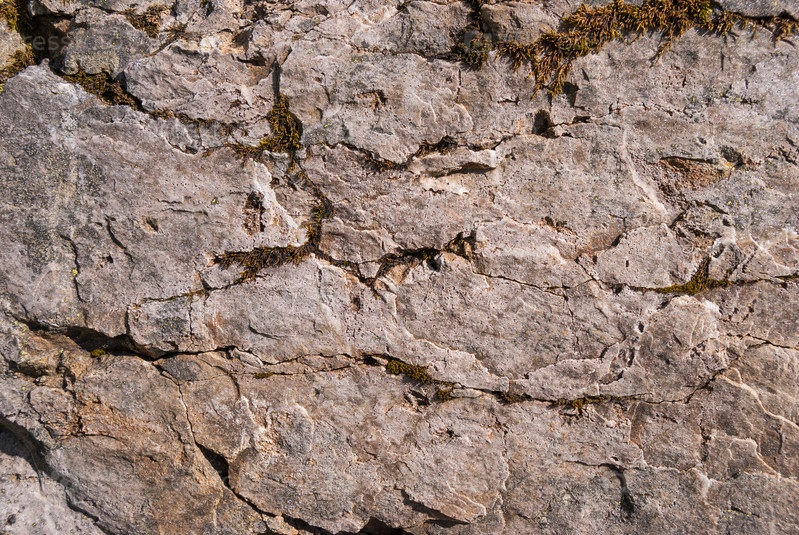 Крупный план серых скал, покрытых мхом, узор сколов, трещин. Гриндельвальд, Швейцария