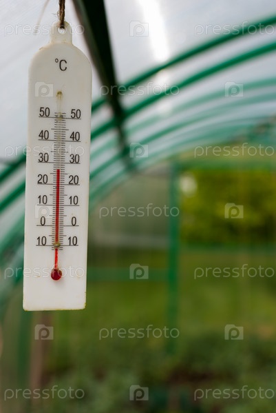 В теплице висит термометр для измерения температуры воздуха