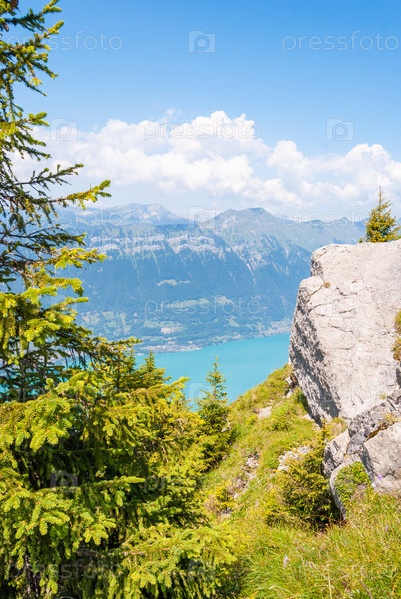 Красивая долина Интерлакен и озеро Тунерзее. Альпы Швейцарии