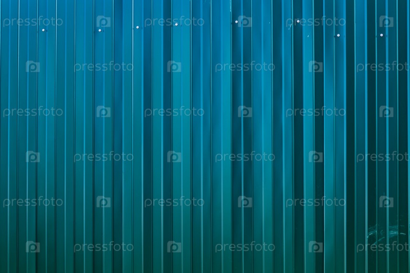 Забор изготовлен из металлического профиля на саморезах. Железный забор. Новый металлический забор. Текстура или фон. На заднем плане металлический забор. Металлический гофрированный профиль