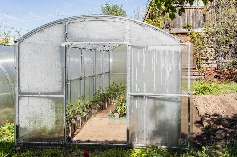 Теплица из поликарбоната на загородном участке. Тульская область, Россия