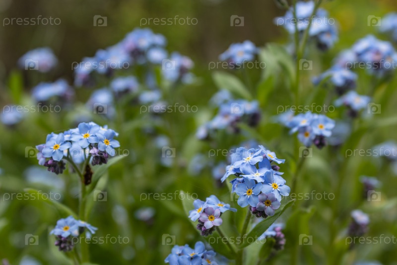 Голубые памятники, Myosotis sylvatica, трава скорпиона, цветок на весенней лужайке
