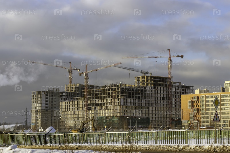 Строительство современного жилого комплекса. Москва, Россия