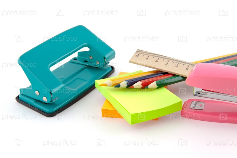 Канцтовары на белом фоне
