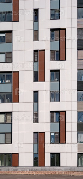 Фрагмент фасада современного жилого дома. Москва, Россия