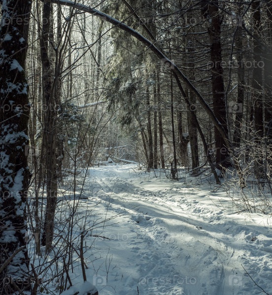 Лыжная трасса в снежном зимнем лесу для прогулок