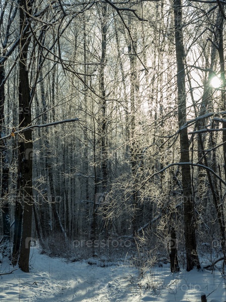 Лыжная трасса в снежном зимнем лесу для прогулок