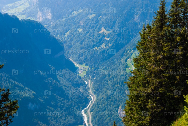 Вид сверху на глубокое красивое ущелье в швейцарских Альпах