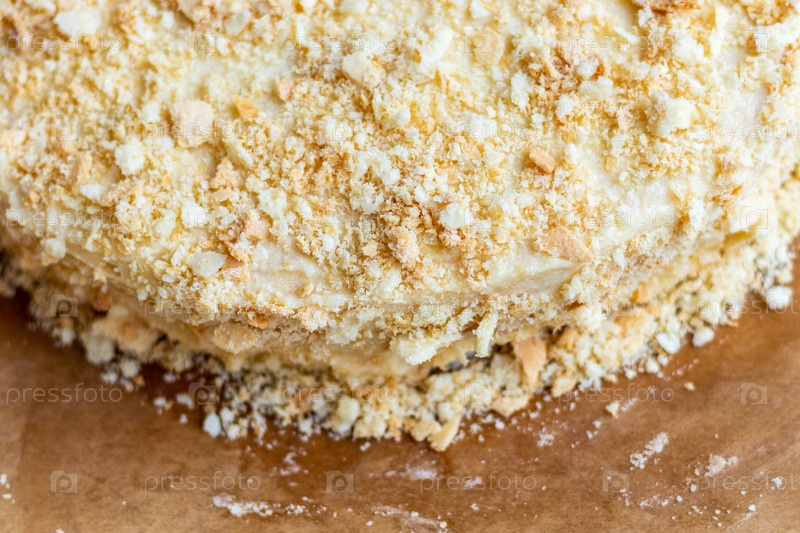 Слоеный круглый торт Наполеон с заварным кремом и посыпанный крошкой
