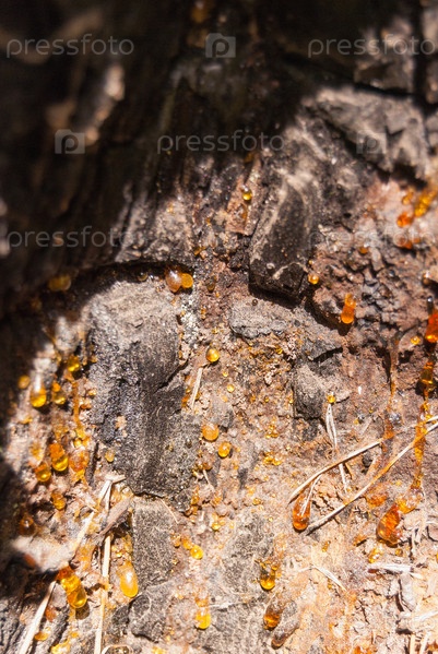 Капли смолы внутри старых сосен, капли смолы, абстракция, природа