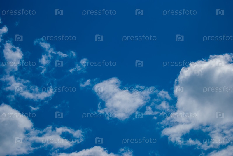 Белые кучево-дождевые облака на фоне сочного голубого неба