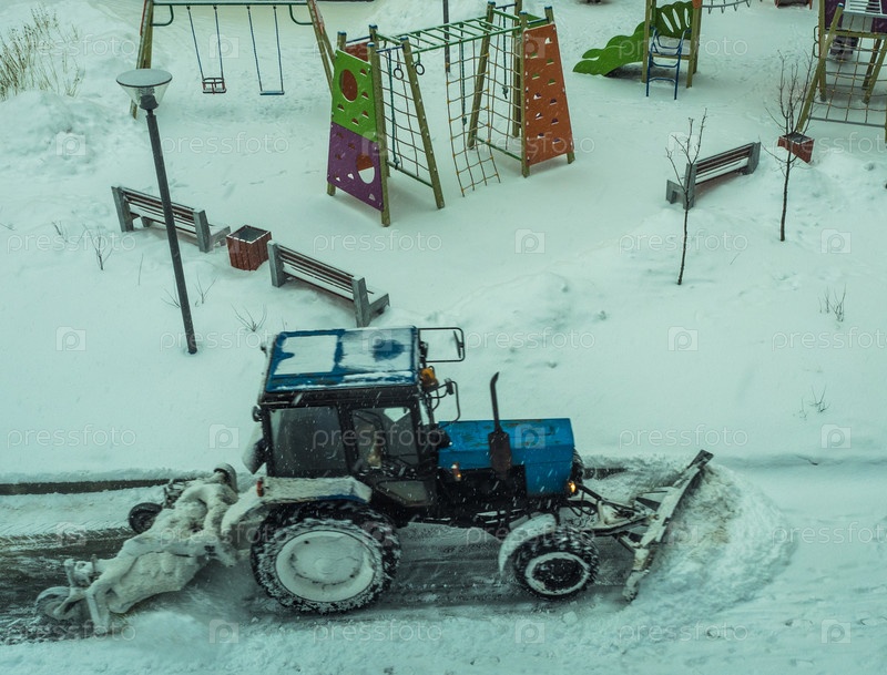 Трактор чистит дорогу от снега