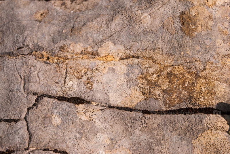 Гладкий природный камень с неповторимыми светлыми прожилками, трещинками, поросшими мхом и лишайником
