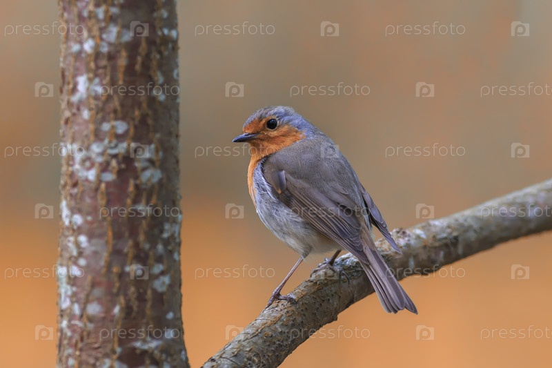 Красивая маленькая певчая птица малиновка сидит на ветке в парке