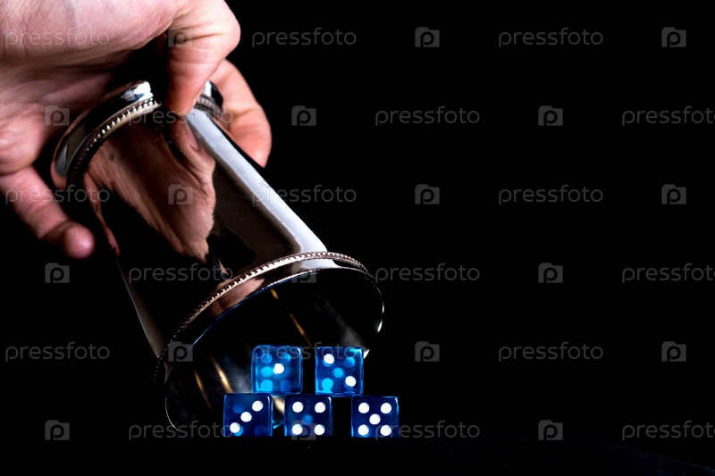 Стакан с игральными костями на черном фоне