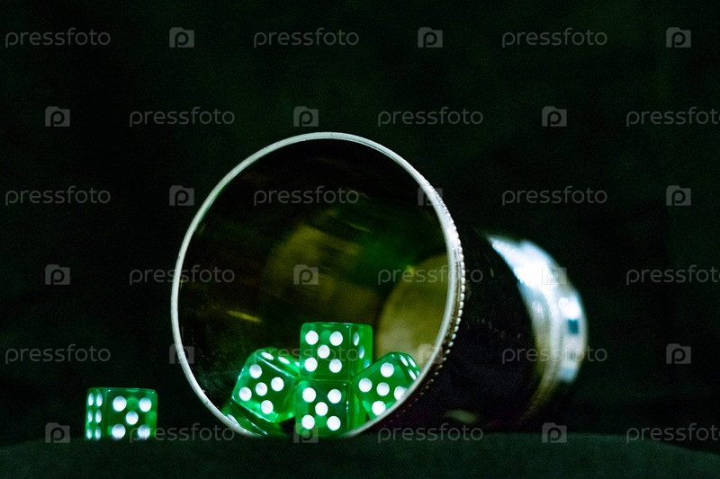 Стакан с игральными костями на черном фоне