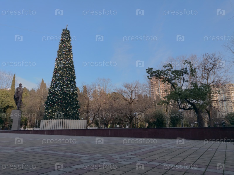Елка на площади у здания городского собрания, январь, Сочи