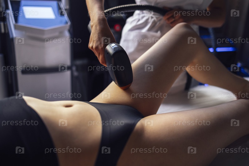 Молодая женщина получает фотоэпиляцию во время посещения салона красоты в салоне