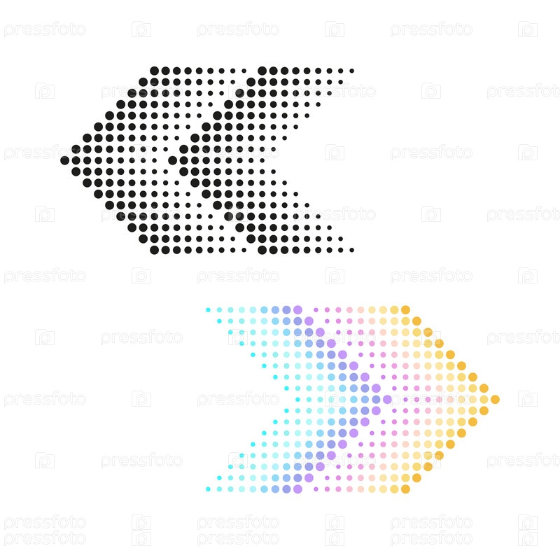 Стрелки крупным планом. элементы для креативного дизайна. Цветная и черная стрелка с эффектом полутонов. Векторная иллюстрация. Пунктирный логотип направления вперед, значки поворота
