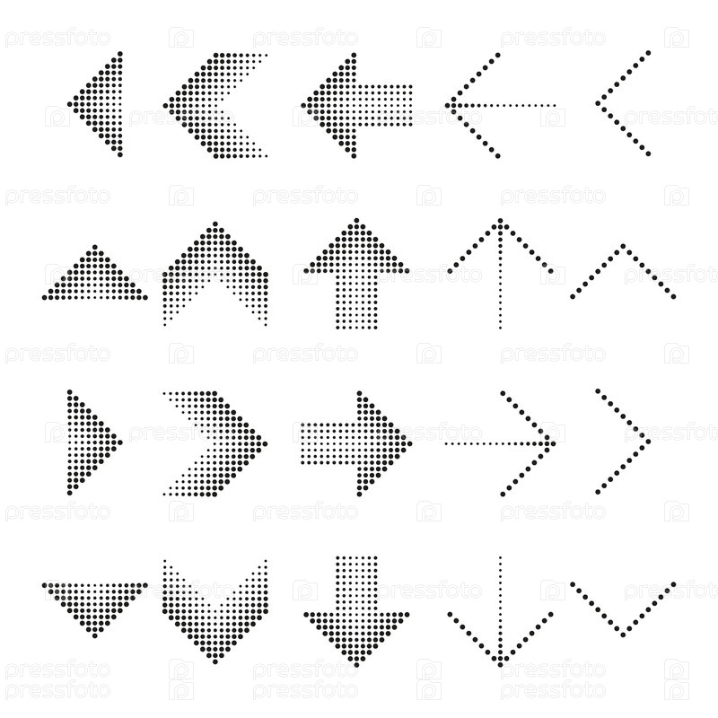 Набор стрелок с эффектом полутонов, изолированные на белом фоне. элементы для креативного дизайна. Векторная иллюстрация. Пунктирный логотип направления вперед, значки поворота, назад, вправо, влево