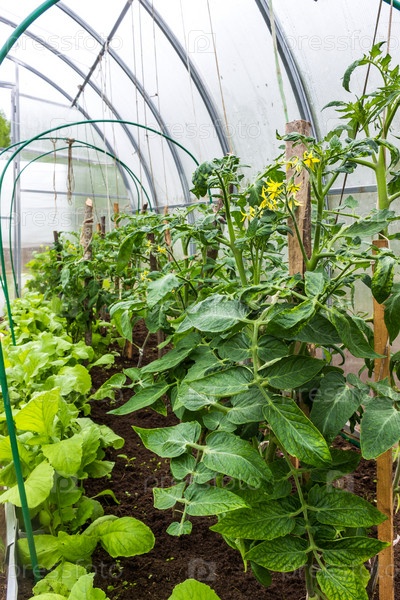 Загородный сад. Выращивание салата, помидоров и сладкого перца. сельское хозяйство